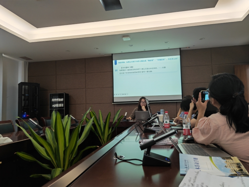 郑可菜老师对各位学员的“教学金点子”逐一点评。或中肯地提出建议,或就某一细节纠偏,或建构思维逻辑链条,或破除“以喻代议”写作误区。名师指路拨云见日,高徒循理茅塞顿开。可菜老师既有专业锐度又不失师者温度的精准点评,让学员们经历了一场头脑风暴。教学痛点恰是创新起点,这些金点子如同教学星河中的引航灯,不仅照亮了前行的道路,也启发了我们不断探索和创新的智慧。