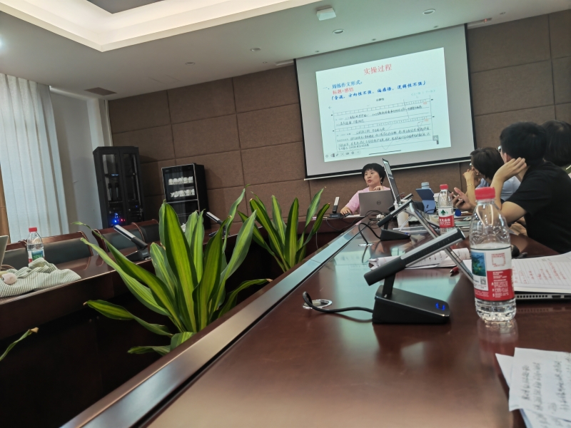 倪彬颖老师分别从“分观点结构的量化”“关键词和观点设立——依据材料分层、合 并、归纳提取”“观点的阐述——词语选择和逻辑建立”等方面谈了自己在作文教学方面的思考与经验。