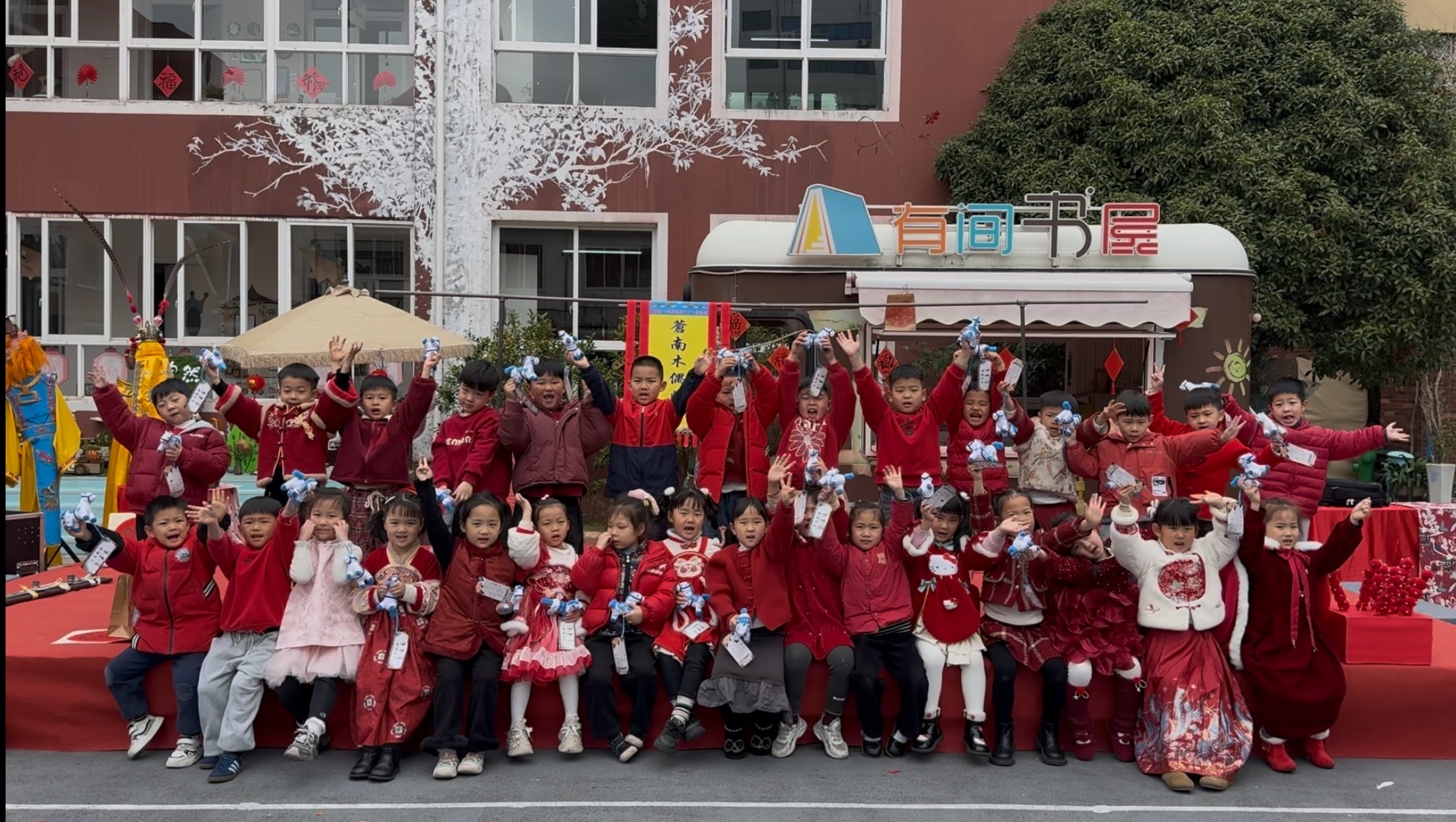 开学当天小朋友们见到了想念已久的老师和伙伴们,还看了大戏,吃了欢喜宴。开学第一课真幸福呀!