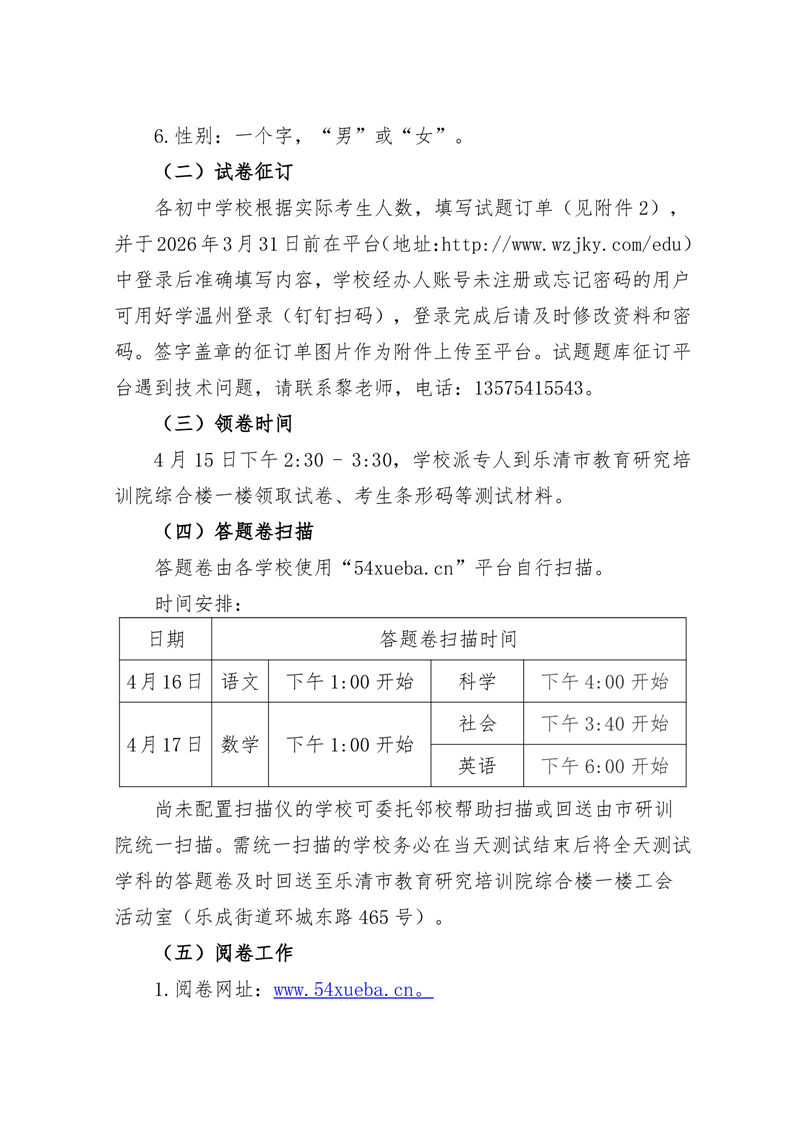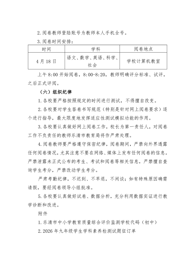 乐研训【2026】140号关于组织乐清市2026年九年级学生学科素养检测统一网上阅卷工作的通知.pdf
