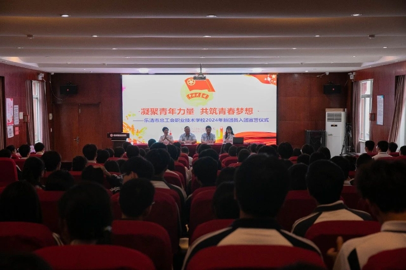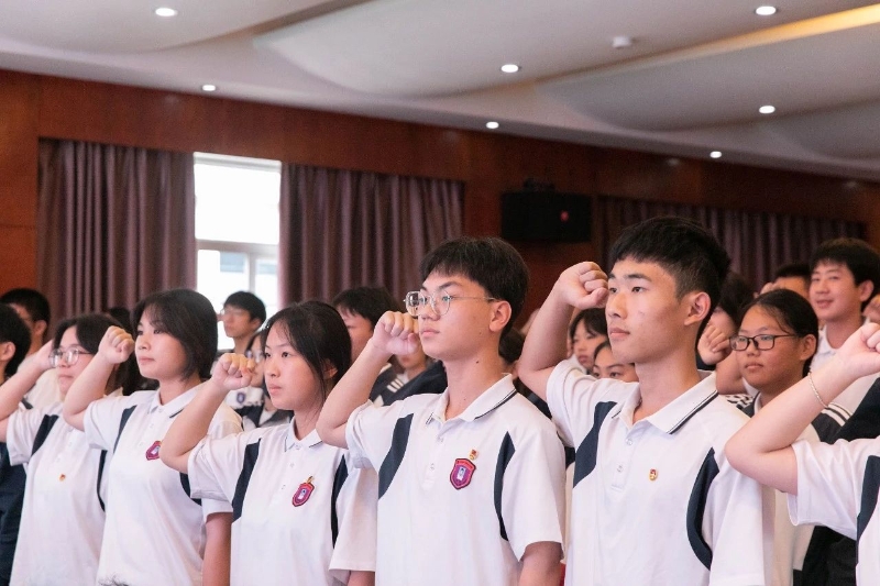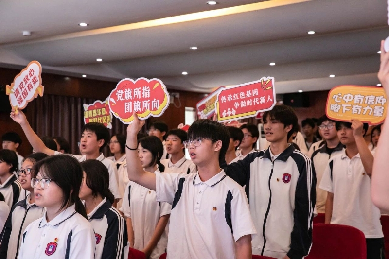 在团旗的见证下,在新团员代表鲍政炀的带领下,新团员们列队整齐,右手握拳举过肩,庄严宣誓。他们声音洪亮,誓言坚定,表达了对团组织的忠诚和对青春梦想的执着追求。龚校长对新团员的加入表示祝贺,并对他们提出了殷切的期望和要求,鼓励新团员们要牢记团组织的宗旨和使命,积极参与团组织的各项活动,努力提高自己的综合素质,为团组织和国家的发展贡献自己的力量。新团员代表鲍政炀分享了自己的入团感受和对未来的展望,表示将珍惜机会,努力学习,为团组织增光添彩。最后,全体师生起立,共同唱响《光荣啊,中国共青团》。