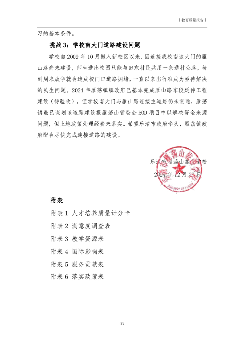 乐清市雁荡山旅游学校教育质量报告(2024年度)