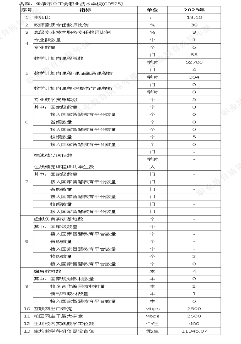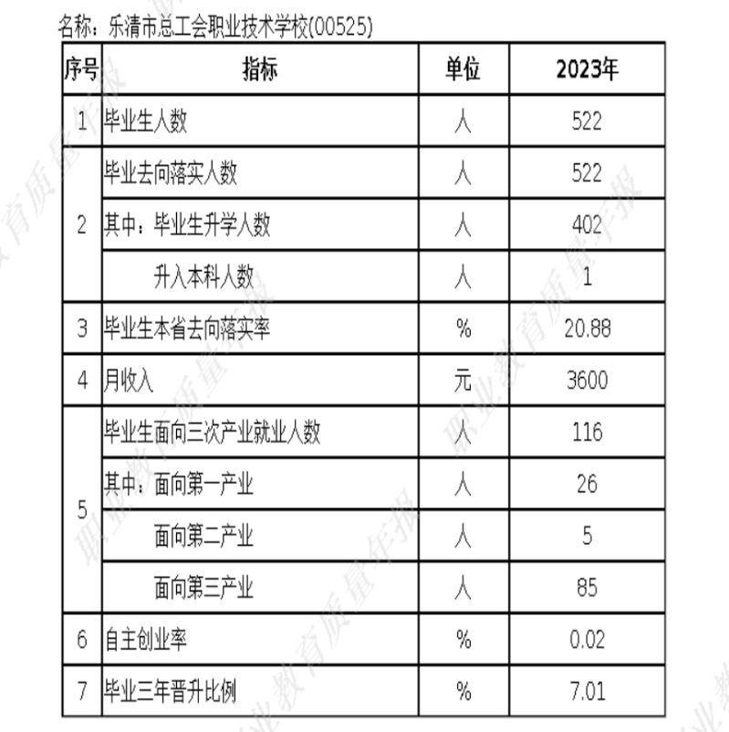 学校对 乐清市总工会职业技术学校 质量年度报告(2023)及相关附件的真实性、完整性和准确性负责。