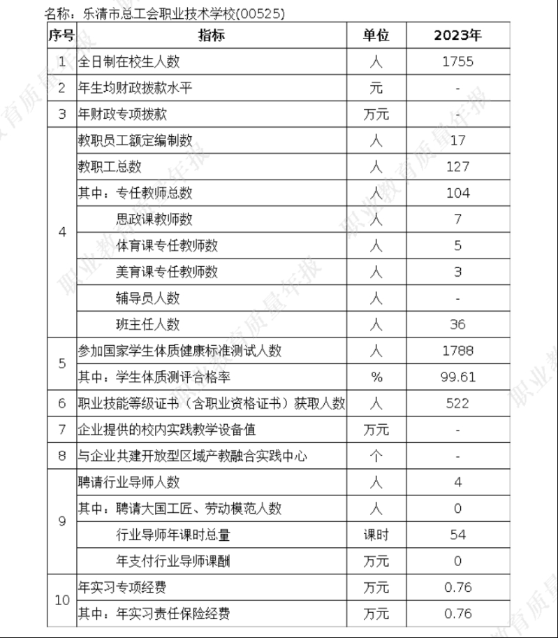 随着时代的进步和经济的发展,教育质量的提升已经成为各类学校的核心任务。作为中职学校,乐清市总工会职业技术学校深知肩负着为社会培养高素质技术技能人才的重要使命。此份质量年度报告,以详细展示学校在党建、立德树人、专业建设、产教融合、双师队伍等方面所取得的成果与进展。在编制过程中,我们遵循了客观、真实、准确的原则,对全校的教育教学工作进行了全面的梳理和总结。同时,我们也广泛征求了教职工、学生及家长的意见和建议,力求使这份报告更加贴近实际、更加全面深入。