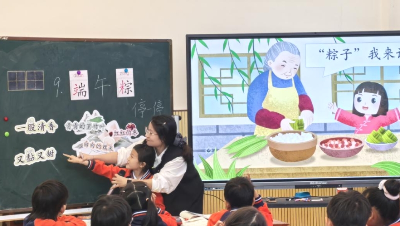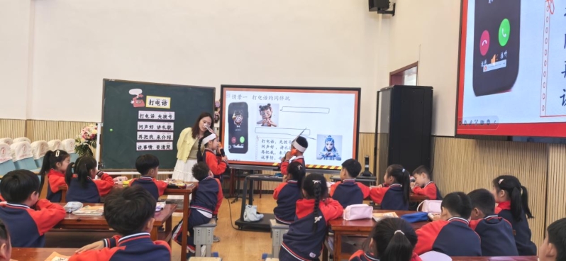 乐清市淡溪镇第一小学薛银丹老师执教《夜色》一课,巧妙运用“魔法小棒”指导学生掌握朗读停顿技巧,让学生在诗意的课堂中感受语言之美。乐清市雁荡镇第五小学陈茜茜老师执教的《端午粽》,通过借助标点、串联短语为学生长句朗读打下基础,引领学生在趣味多样的字词学习中为“粽子”代言。乐清市大荆镇第一小学马雅婷老师执教口语交际《打电话》,借助“哪吒”形象激发学生表达兴趣,精心设计了层层递进的交际情境,有效提升了学生的口语交际能力。