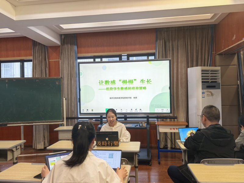 林老师的专题发言围绕“数感培养”主题展开,林老师先是阐述了数感的内涵及小学阶段的数感发展。紧接着林老师针对低学段学生认知特点,提出三大培养策略:其一,创设生活化情境,通过购物估算、物品测量等实践活动建立数量感知;其二,运用数独游戏、角色扮演等趣味化教学,在游戏中内化数学概念;其三,强化多感官协同学习,借助摆小棒、找页码等具象操作实现抽象认知转化。林老师最终指出,数感培育是润物无声的过程,需要教师在长期实践中实现学生数学素养的全面提升。