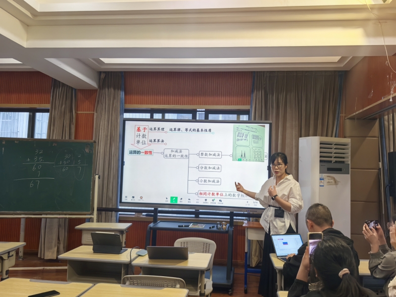 随后,郑乐央名师带领工作室团队开展沉浸式课例研讨,针对五节运算教学课例进行专业诊断。通过“解剖”式的评课,既精准提炼出每堂课的创新亮点,也客观指出各课堂中的不足之处,为参训教师提供了从理念更新到行为改进的系统性指导。