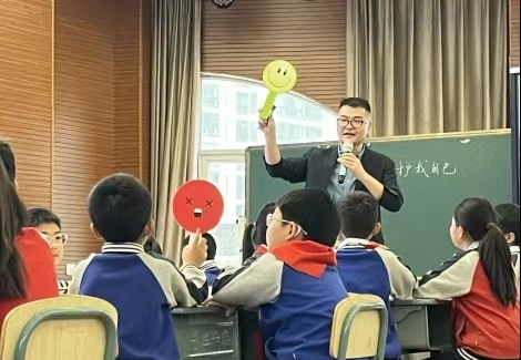 第一节课心理健康课《我会保护我自己》由正高级教师、温州市名师梁继亦执教。梁老师以“口香糖”互动游戏破冰,迅速在课堂中创设出安全的心理场域。梁老师再借助绘本《不要随便摸我》,引导学生思考身体界限,并通过“身体红绿灯”活动,让学生在人体图上标注隐私部位,将抽象的防护概念转化为可操作技能,更通过绘画身体轮廓图提升学生面对危险的预判能力。梁老师的课堂创新,让心理健康教育成为安全防护的内驱引擎。