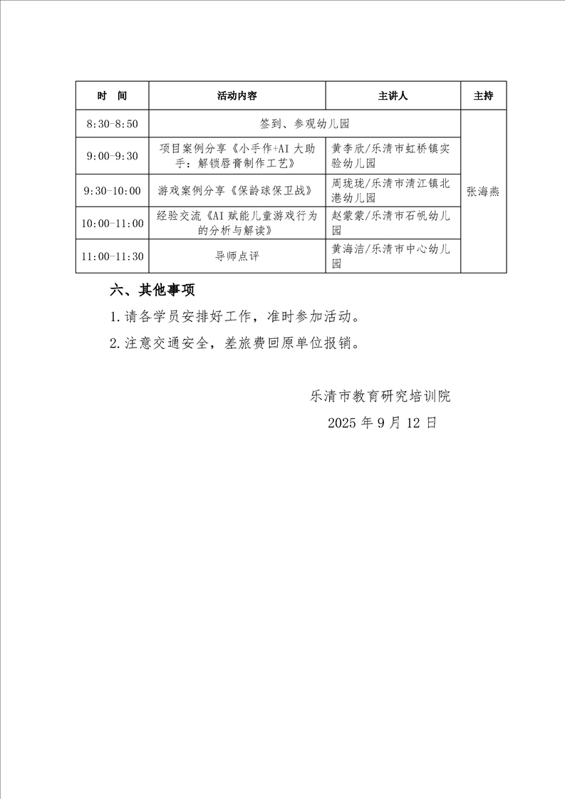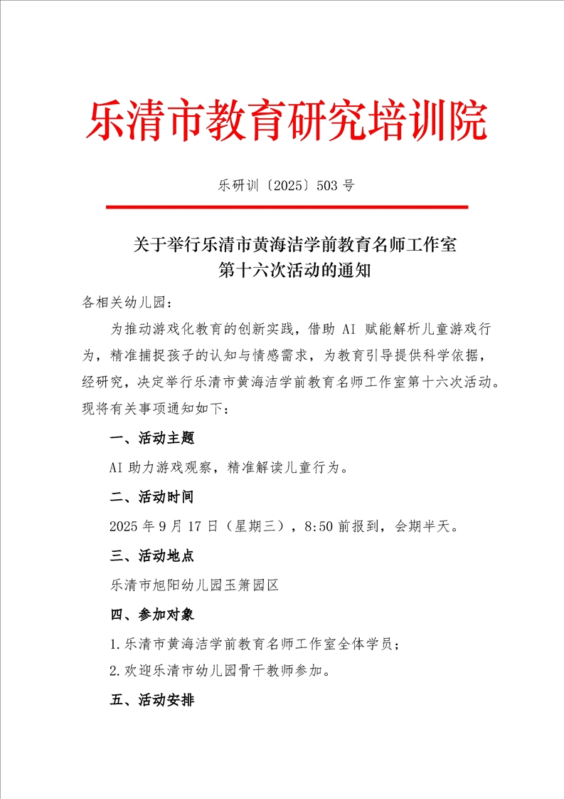 关于举行乐清市黄海洁学前教育名师工作室第十六次活动的通知