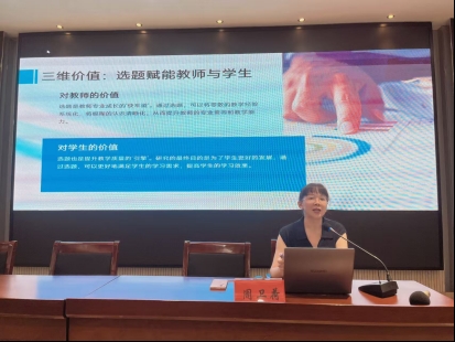 周卫荷老师带来了《课题撰写的二三事》的亲切分享。她以丰厚的实战经验,将复杂的课题撰写化为生动的教育叙事,从凝练问题到架构逻辑,诠释了如何将散落的思索串成严谨的体系。她的讲述,充满了同行者的温度与智慧,激励着大家将心中所想,落笔为扎实的成长足迹。