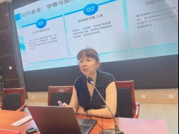 活动在张娅媚老师的分享中温情启幕。她以《教师论文的选题与撰写》为题,以自身经验为范本,将枯燥的学术写作娓娓道来。张老师认为,论文选题的智慧在于“从实践中来,到实践中去”,关键在于立足教学真问题,将切入点化小、化实,并尝试以新视角、新方法赋予常规主题以新意。最终目标是让论文源于教学、服务教学,成为我们专业成长的清晰脚印。