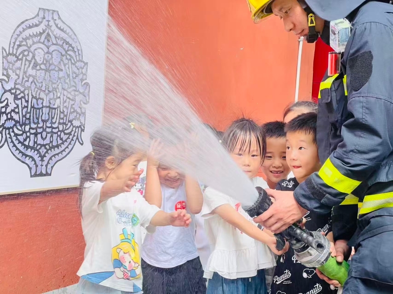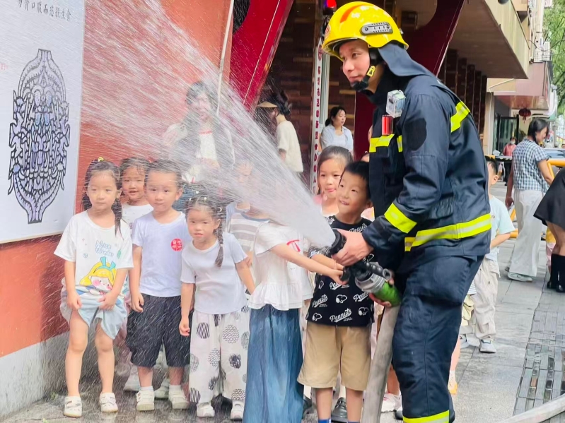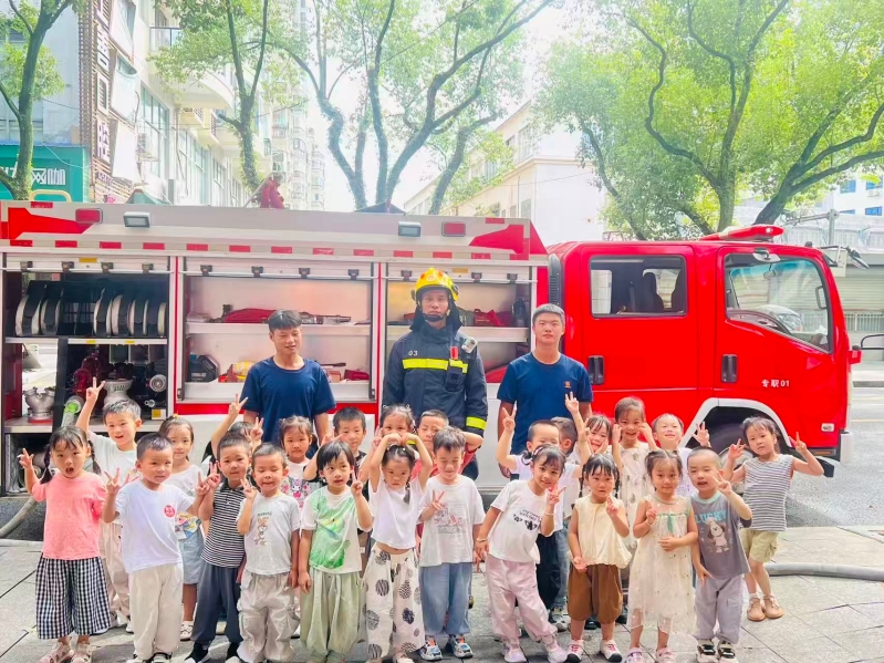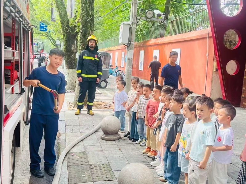 消防员叔叔打开车厢,神奇的水带威风的消防服一一呈现在眼前,