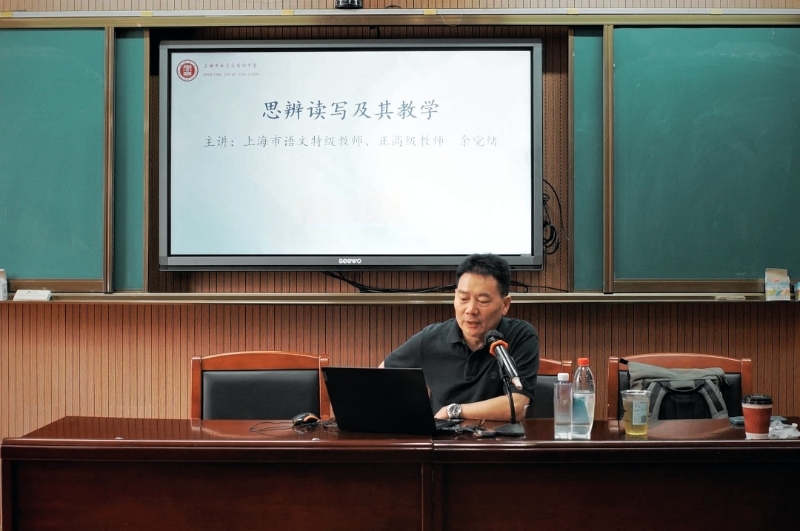 午后讲座环节,上海师范大学附属中学余党绪老师带来《说理与思辨:议论文教学观念亟待革新》专题报告,深度剖析当前写作教学痛点;工作室主持人郑可菜老师则结合实践,分享《思辨性写作的教学路径》创新方案,为与会教师提供可复制的教学范式。