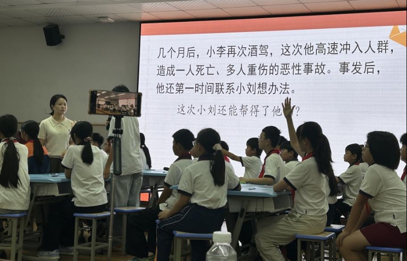 蒋慧昳老师接棒六年级课堂,《别让“义气”遮了眼 纠正错误才是真》如一场思辨的风吹进学生心中。她以“同伴犯错该如何做”为引,借真实案例拆解“盲目包庇”与“真诚劝诫”的边界,学在生们的热烈讨论里,“真义气”的底色渐次清晰。最后,蒋老师她播放“核潜艇院士黄旭华隐姓埋名报国”的视频,当“舍小家护大家”的抉择铺展在眼前,学生们的思辨升华为共鸣:“没有国就没有家,真正的大义,是守住底线、护好家国。这堂没有说教的课,让“坚守原则才是真担当”的认知,在热烈的思辨与家国情怀的浸润里稳稳落地,成了少年成长的生动一课。