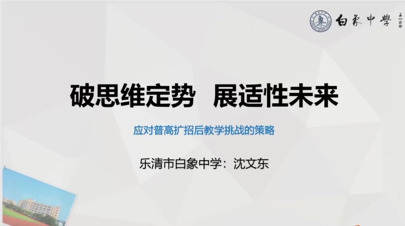 柳市中学支部委员、副校长郑洁分享了柳市中学“以课程体系驱动学校高品质发展的实践与探索”。学校构建“公能”课程体系,主要涵盖党建、德育、教学、教师培训四大领域,成为学校适应未来、迈向高品质发展的重要平台。同时,通过扎实的课程建设、课程实施和课堂变革,积极打造特色学科基地、特色项目基地和文史特色高中的建设,提供柳市中学新挑战中的竞争力。