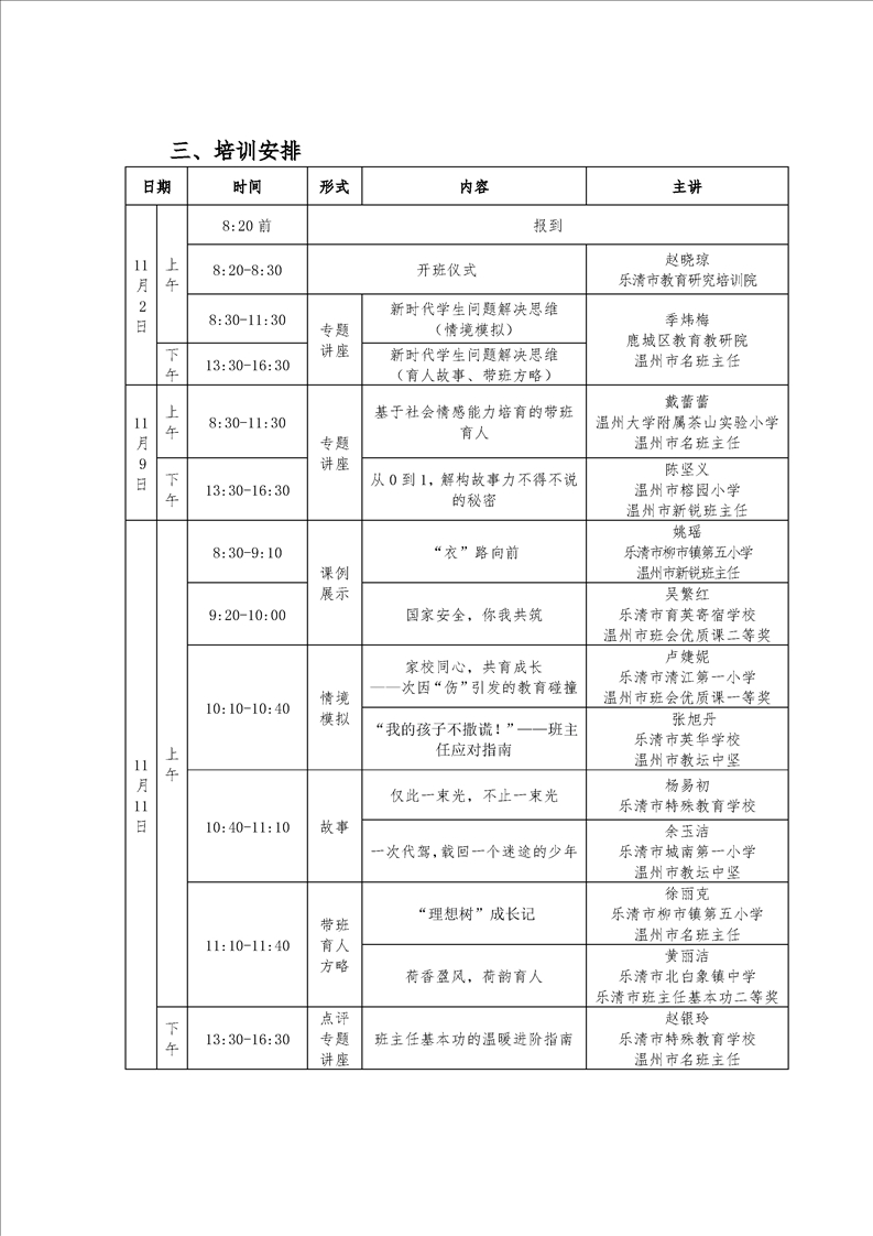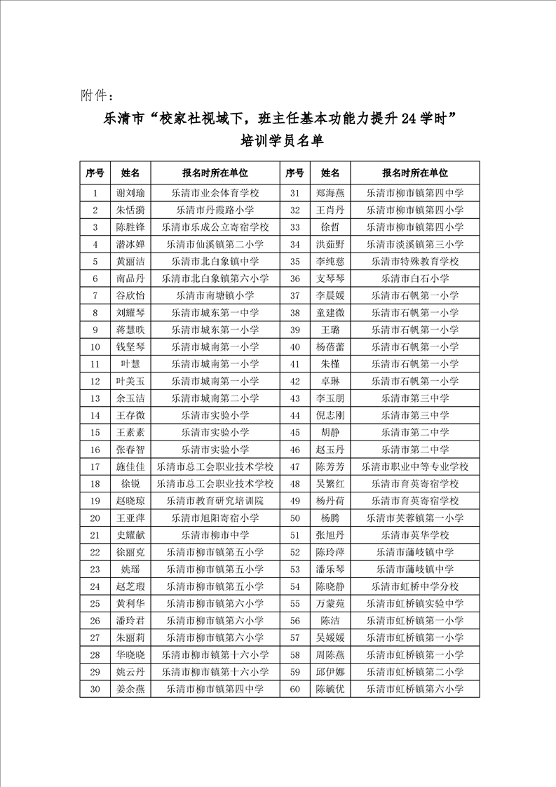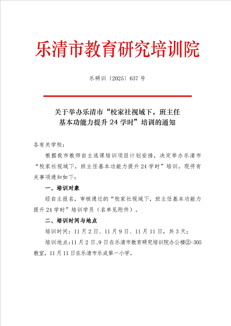 关于举办乐清市“校家社视域下,班主任基本功能力提升24学时”培训的通知
