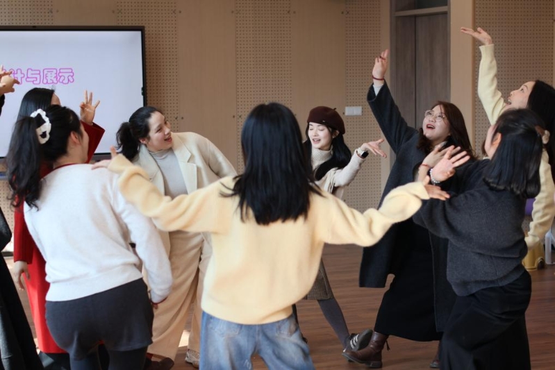 压轴出场的黄凌晨老师则将文化理解作为教学重点。她通过精美的视频资料,带领学生深入了解景颇族的生活习俗和劳动文化。在学唱歌曲时,黄老师特别注重原生态唱法的模仿,引导学生用自然的嗓音表现劳动歌谣的韵味。在拓展环节,她组织学生分组创编"舂米劳动剧",将音乐、舞蹈、戏剧融为一体,全面展现景颇族的劳动场景。这种沉浸式的文化体验,让学生真正走进了少数民族的劳动生活。