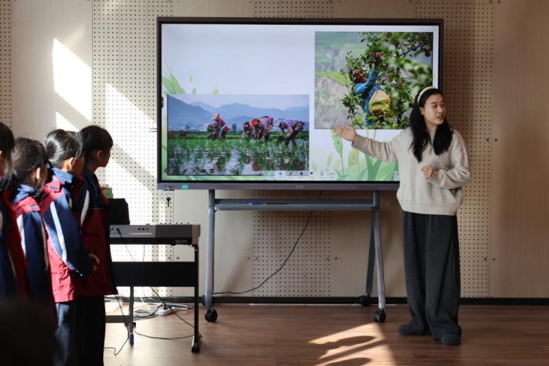 午后,李若萱老师的课堂则另辟蹊径,以"劳动的回想"为主线,带领学生穿越时空,感受传统劳动方式的魅力。她通过播放老一辈人舂米的纪实影像,引导学生对比现代机械化生产与传统手工劳动的差异。在学唱环节,李老师特别注重歌词意境的挖掘,让学生通过朗诵、讨论等方式,体会歌词中蕴含的劳动智慧。在创编环节,学生们为歌曲加入自创的衬词,用稚嫩的歌声表达对劳动人民的敬意。这种注重文化传承的教学方式,让劳动教育在音乐课堂中自然生根。